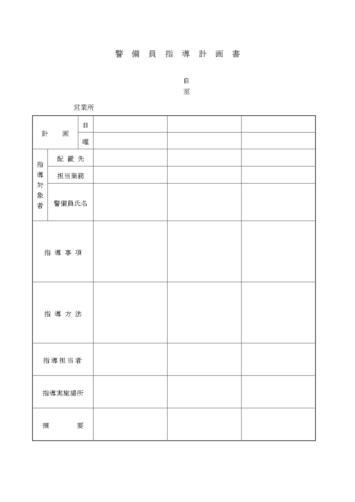 指導計画書には定められた書式というのはありませんが、警備業協会が指導する書式というものがありますのでその書式をここではご紹介させていただきます。